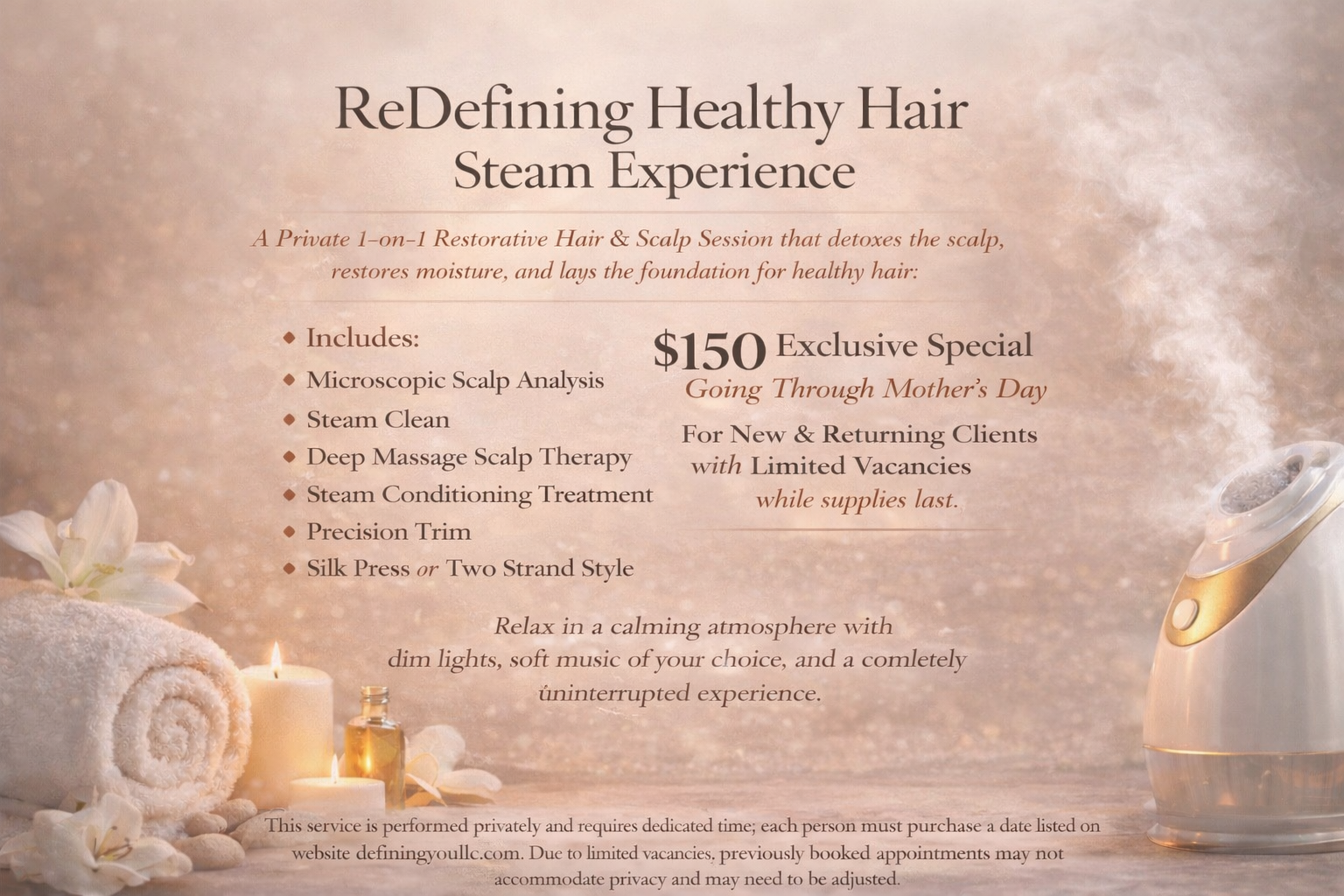 • Defining You Hair Wellness Salon reserves the right to limit or close enrollment at any time.